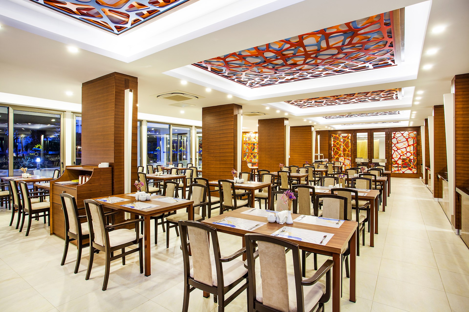 The hotel’s 'ultra all-inclusive' board basis allows guests to enjoy a wide-ranging international buffet at the main restaurant, available for breakfast, late breakfast, lunch, dinner, and a late-night meal, all accompanied by unlimited local and imported alcoholic and non-alcoholic drinks. At the Saluna Cafe, you can treat yourself to tea, coffee, soft drinks, and an assortment of patisserie delights. A variety of bars, including the Lobby Bar, Pool Bar, Salamis Club, and Beach Bar, offer a selection of beverages, from coffee and cocktails to unlimited local and imported drinks.