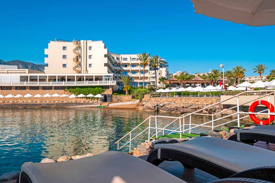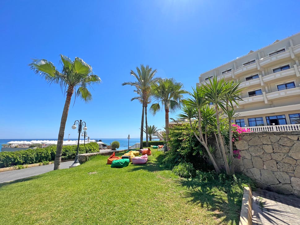 This modern hotel has contemporary decor throughout the plush and spacious rooms and suites. Balconies offer superb views of the gorgeous sandy beach and brilliant blue Mediterranean Sea. The hotel is surrounded by tropical gardens with walkways through the exotic plants and foliage. The unusual swimming pool provides an attractive focal point. A stone jetty leads to an attractive circular terrace in this modern luxury hotel. Guests can look forward to pampering treatments in the serene spa or spend the day relaxing beneath a shady parasol on the golden sandy beach.