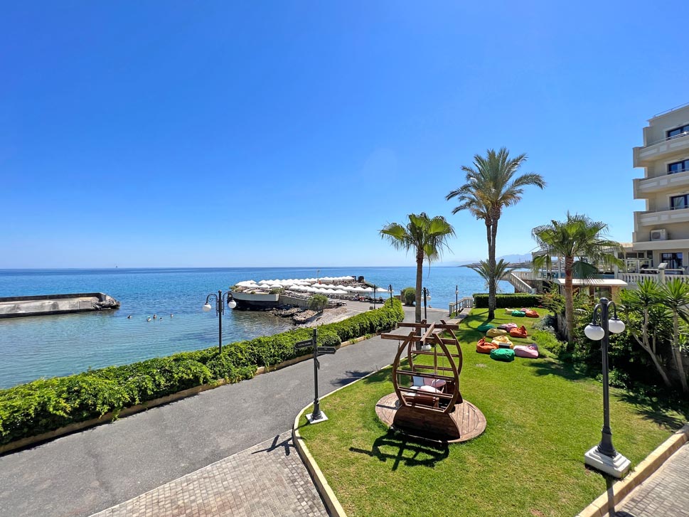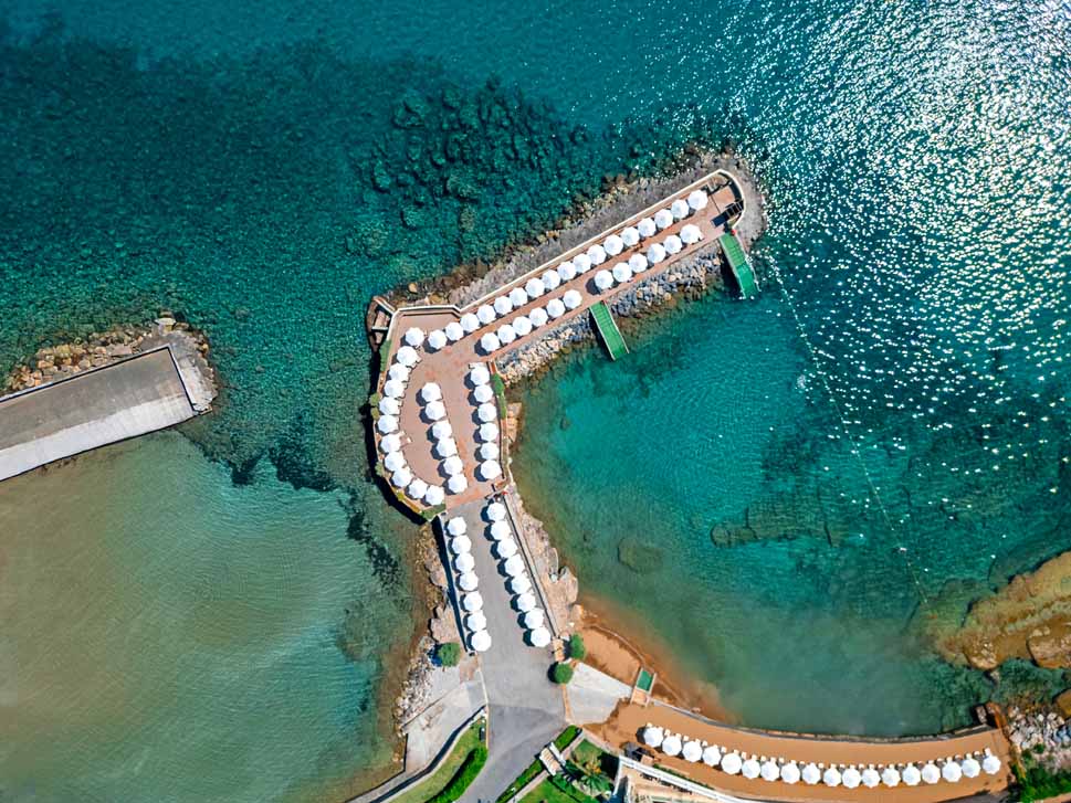 The Vuni Palace Hotel and Casino provides three swimming pools which are open all year. The splendid outdoor pool is reached via an elegant staircase which provides stunning sea views from its elevated position. The pool includes a separate shallow children’s area. The luxurious indoor pool is perfect for revitalising in the calm and tranquil atmosphere of the upscale spa. During the summer, hotel staff arrange plenty of fun activities poolside to add to the fun for families and couples looking for a good time.