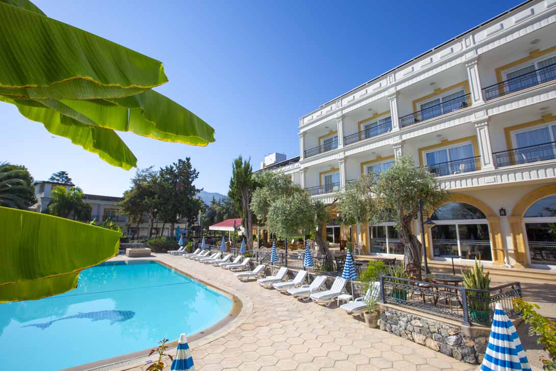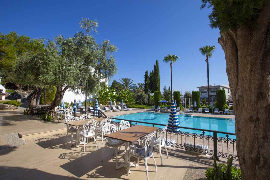 Nestled in the scenic foothills of the Kyrenia Mountains, between the historic Bellapais village and the bustling town of Kyrenia, Altinkaya Holiday Resort is a favourite among couples seeking a peaceful getaway. The whitewashed resort is enveloped by lush gardens, creating a serene environment. Guests can enjoy a refreshing outdoor pool, with a convenient poolside snack bar for added comfort.