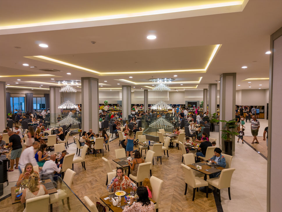 Main meals are served at the on-site international buffet restaurant, which offers a variety of delectable dishes as part of the All-inclusive experience. The main meals served in the Elegant main restaurant are accompanied by a wide selection of alcoholic and non-alcoholic drinks.