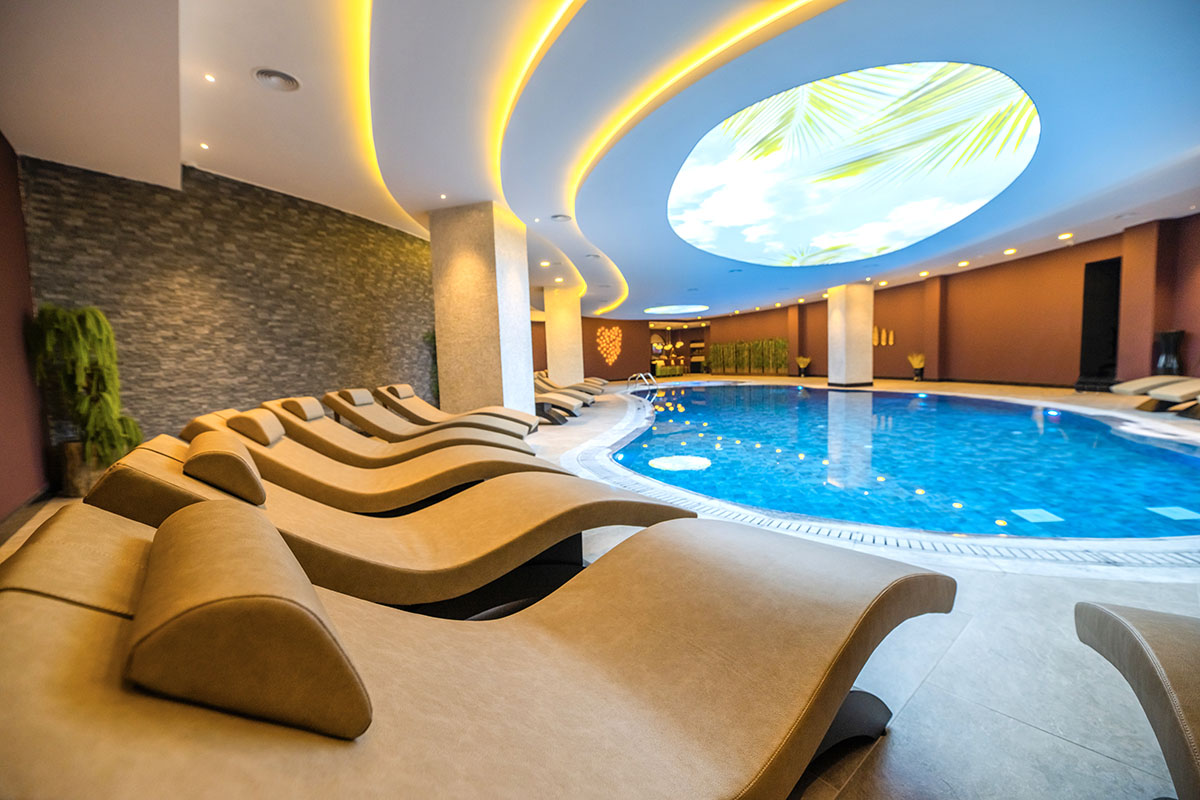 There is also an indoor pool, Turkish baths, steam room, relaxation room, and Sauna in the Lotus Spa and fitness centre at the Chamada Prestige Hotel.