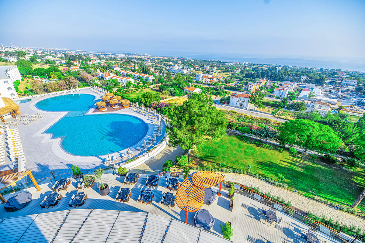 Chamada Prestige Hotel is a Tripadvisor award-winning all-inclusive hotel. It is perched on a high platform, looking down onto Kyrenia's centre from an oasis of lush palm trees. There are breathtaking scenery and panoramic vistas from every direction to enjoy.