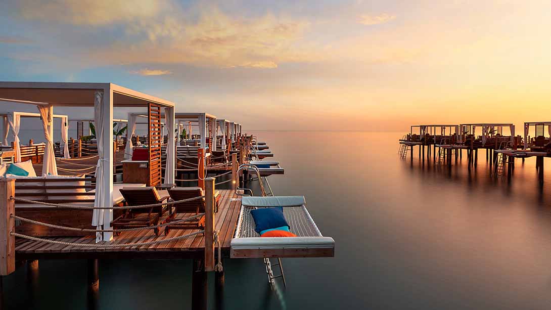The extensive beach area is right on the doorstep of the Elexus Hotel. It includes an adult only exclusive Beach Club, which ensures a relaxing time with everything guests could want for a relaxing day on the beach. This chic Miami-style amenity includes luxurious sun loungers, day beds, modern sofa loungers and shady private kabanas right at the water’s edge. The beach is also the location for beach parties with top DJs and is a highlight of any visit.