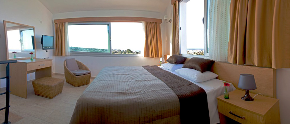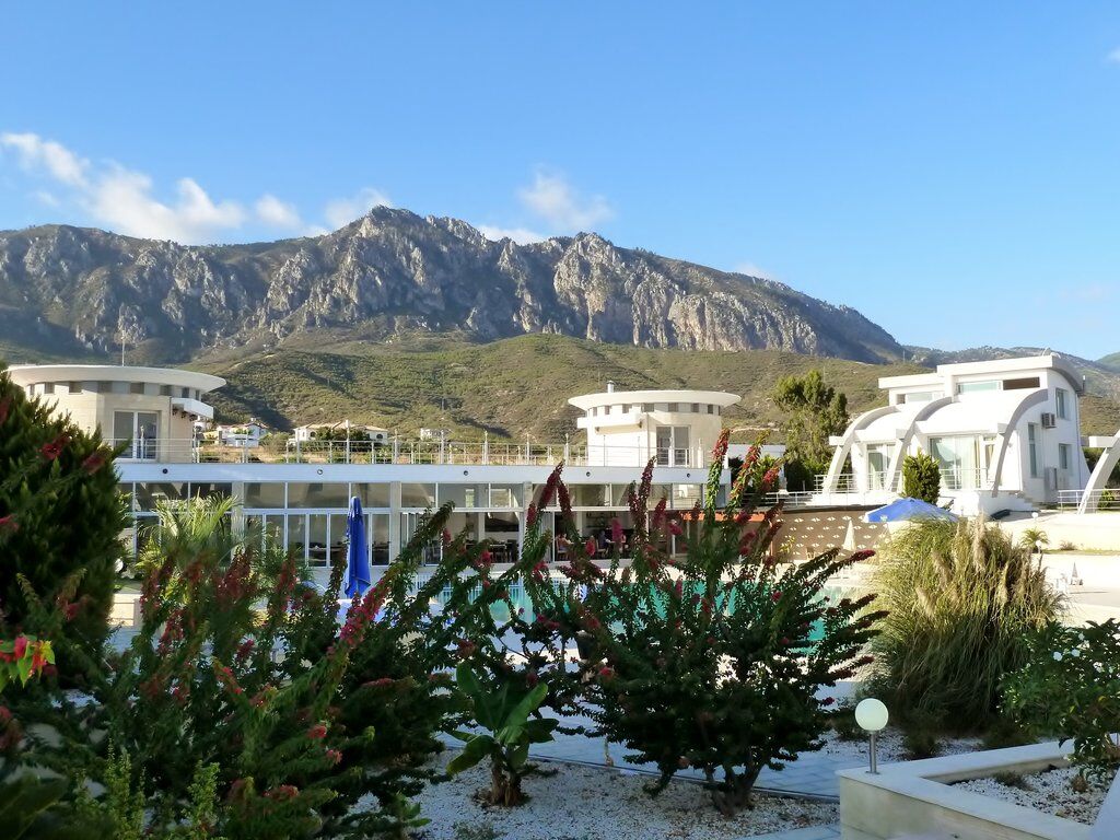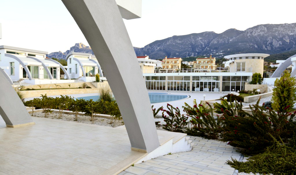 Accommodation is in stylish modern bungalows in this modern terraced complex, all overlooking the central swimming pool and sun terrace. Curving arches and white domed roofs make a surprisingly modern statement. Inside, guests can spread out in the spacious rooms which are well-appointed with contemporary furniture. Private terraces provide a quiet place to relax and soak up the mountain and sea views. The focal point is the sweeping curved pool surrounded by sun loungers on the sun terrace. It's a delightful place to relax in the sun as part of your North Cyprus holiday.