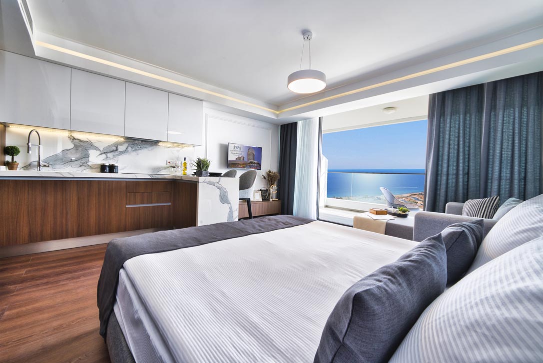 Step into a luxury resort defined by its unique architecture and exceptional comfort in North Cyprus. Enjoy one of the island’s trendiest beach clubs, a breathtaking infinity pool on the 26th floor, world-class service, and a stylish skyline lounge and bar on the 22nd floor. This luxury resort sets a new standard for holiday excellence. Be among the first to experience true elegance in Famagusta.