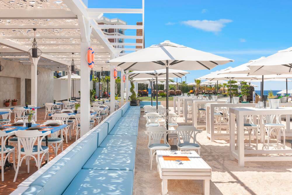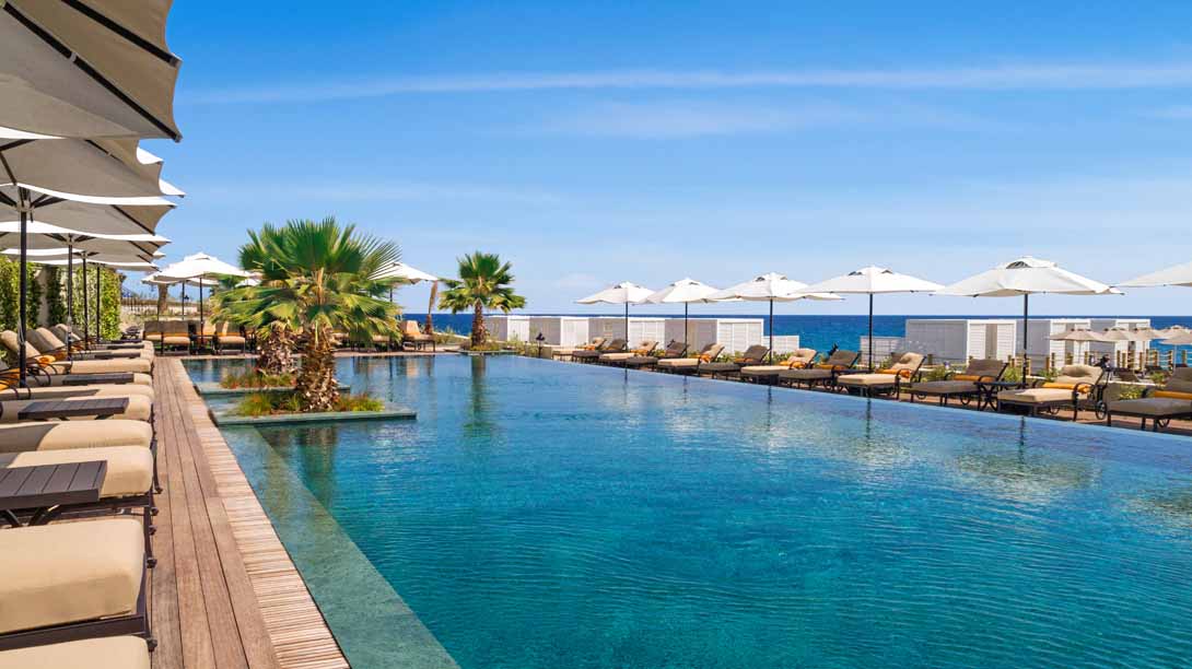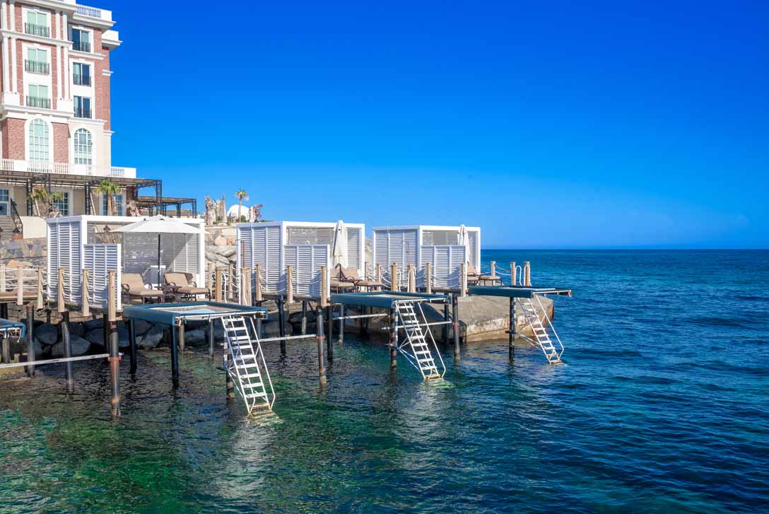 The hotel has two stunning outdoor swimming pools with lovely views of the Mediterranean Sea. Surrounded by tall palm trees, the pool areas are designed to offer guests a truly tranquil pool experience with plenty of sun lounges to accommodate many guests.