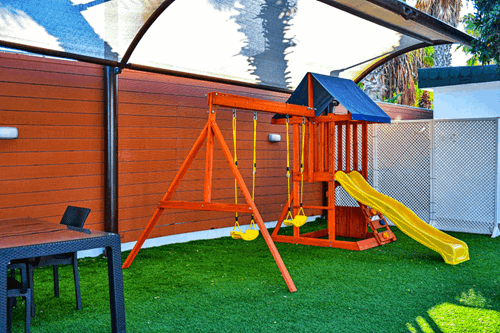 The swimming pool is really fun! You can even swim up to the bar for cool drinks. Relax on a lounger by the pool or grab a snack on the lawn under a shady umbrella. There's also a kids pool are for your little ones to enjoy!